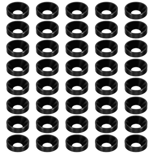 PATIKIL M5 fräsch bricka med försänkt huvud, 60 st anodiserad aluminiumlegering platt huvudskruvbricka för mekaniska tillbehörsdelar, gör-det-själv-modeller, svart