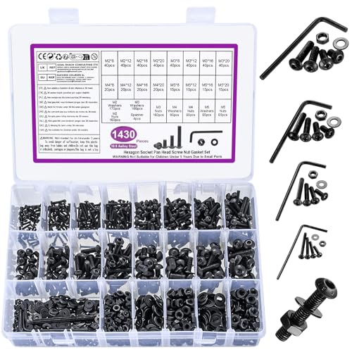 1430st M2 M3 M4 M5 uppsättning skruvbultar och muttrar, runda sexkantsbultar, skruvar och muttrar och bricka, skruvar och bultar och muttrar set, muttrar och bultar sexkantsskruvar, insexskruvar svart