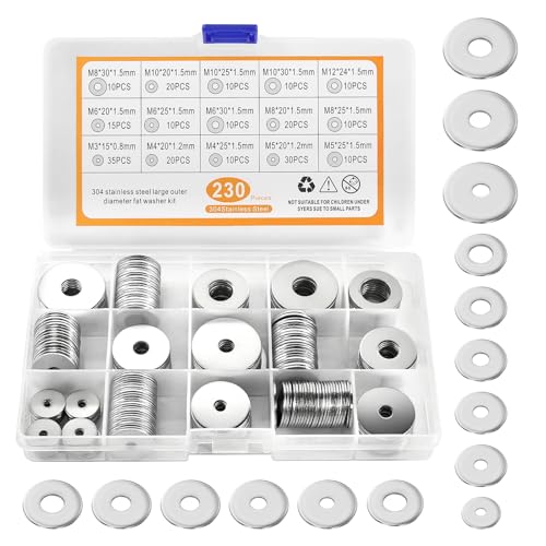 Sutemribor 304 Rostfritt stål Stor Fender Bricka Sortimentsats 200 stycken, 15 storlekar - M3 M4 M5 M6 M8 M10 M12