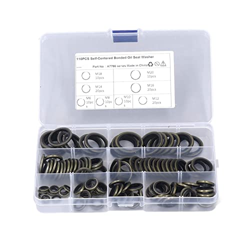 110 Pcs Olje Tätningsbricka 8 Specifikationer M6 M8 M10 M12 M14 M16 M18 M20 Gummibunden Sealibander Oljepackning Metall Tätning Bricka