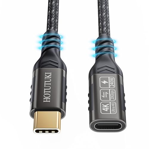 USB C-förlängningskabel 20 Gbps/240 W), USB C 3.2 Gen 2 hane till hona förlängare, typ C 4K @60Hz videokabel, kompatibel med MacBook/Magsafe laddare/USB C-hub/PSVR2 (usb c förlängning 3.2-0.5M)