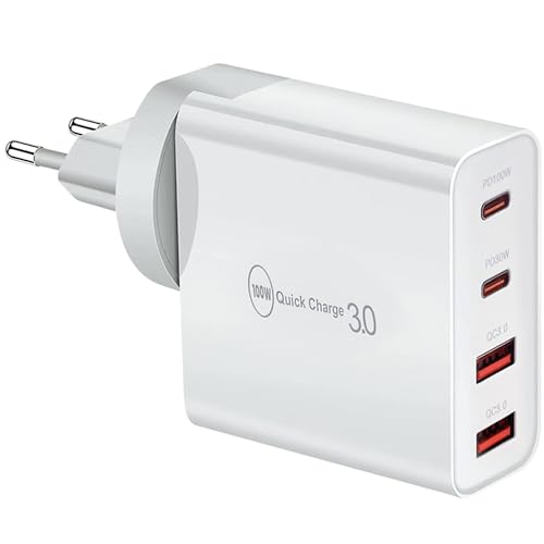 100 W USB-C-laddare, 4-ports snabbladdare, PD 3.0, multipel kompatibel med iPhone 15/14/13/12, Se, Mac Pro/Air, iPad Pro, Samsung, Huawei, Xiaomi, ångdäck, typ C och USB A-strömförsörjning