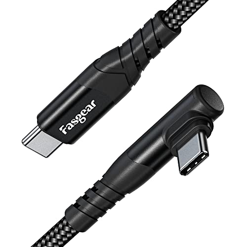 Fasgear USB C till USB C-kabel – 9 fot 60 W USB 2.0 typ C-laddare snabbladdande flätad rät vinkel kompatibel med Galaxy S22 Ultra Note 20 Mac-Book i-Pad Pro i-Pad Air (1 m, svart)