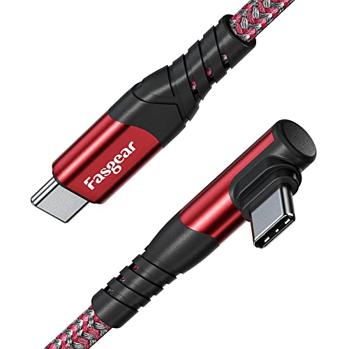 Fasgear USB C till USB C-kabel – 10 fot 60 W USB 2.0 typ C-laddare snabbladdande flätad rät vinkel kompatibel med Galaxy S22 S21 S20 Mac-Book i-Pad Pro i-Pad Air (3 m, röd)