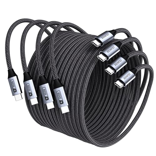 BENFEI Snabbladdande USB C-kabel, 60 W, 4-pack (1M/1 M/2 m), nylonflätad kabel kompatibel med iPhone 15/15 Pro/15 Plus/15 Pro Max, iPad Mini, MacBook, Samsung Galaxy S23