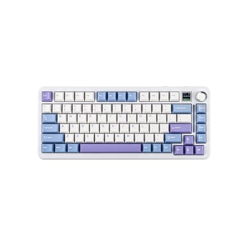 EPOMAKER Cypher81 Trådlöst speltangentbord med TFT-skärm och knapp, 75 % US-layout mekaniskt tangentbord i vadderat gasket med RGB-bakgrundsbelysning för PC/Mac (blå vit, wisteria linear)