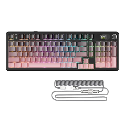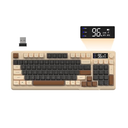 YUNZII IF99 Trådlöst Mekaniskt Speltangentbord med Intelligent LCD-Skärm, BT/2.4G/USB-C Programmerbart Mekaniskt Speltangentbord med 96% Layout för Mac/Win (black, cocoa cream)
