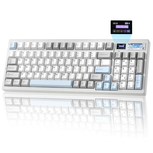 YUNZII IF99 Trådlöst Mekaniskt Speltangentbord med Intelligent LCD-Skärm, BT/2.4G/USB-C Programmerbart Mekaniskt Speltangentbord med 96% Layout för Mac/Win (white, cocoa cream)