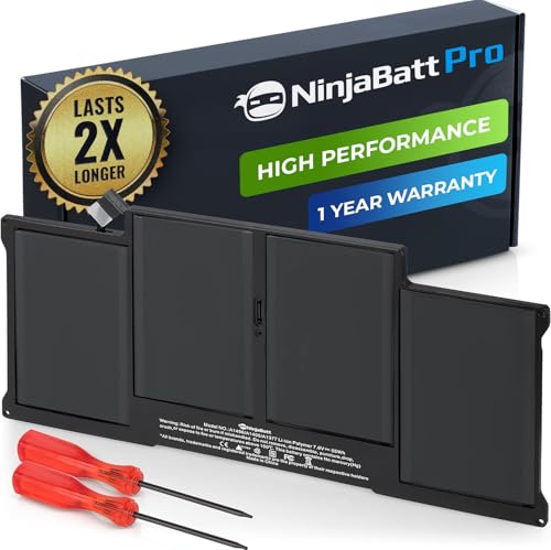 NinjaBatt batteri A1466 A1496 för Apple MacBook Air 13 tum [2010 2011 2012 2013 2014 2015 2016 2017 år] A1369 A1405 A1377 - High Performance [7 200 mAh/55 Wh/7,6 V