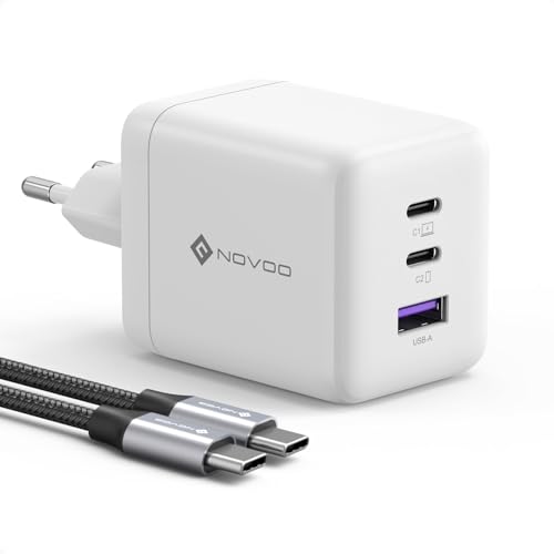 NOVOO 100 W snabb USB-C-laddare, 3-portars USB C-kontakt, kompatibel med iPhone 16 Plus Pro Max, Galaxy PPS 45 W, S24 Ultra, S23, S22, Pixel, iPad, MacBook Air, vit