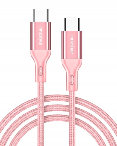INNOSTYLE USB-C 2m 60W-kabel, USB C till USB C snabbladdning, rosa, kompatibel med iPhone 15/16, Galaxy S24, MacBook Air/Pro, stödjer Android Auto och iOS CarPlay