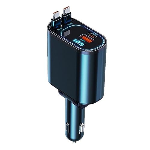 Retractable Car Charger 123W Car Phone Charger Car Power Adapter with Dual USB C Cables USB A PD QC 4 in 1 Fast Charging Cigarette Lighter for iPhone 16/15 Samsung Galaxy S25/S24 Ultra MacBook, Laptop