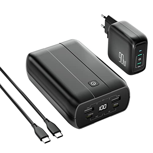 imuto 100W Laptop Power Bank 27200mAh +GaN 90W Portable Charger, Dual USB-C PD (100W & 60W), 2 USB-A (15W & QC3.0 18W) externt batteripaket snabbladdning för bärbar MacBook Pro/Air Dell XPS iPhone