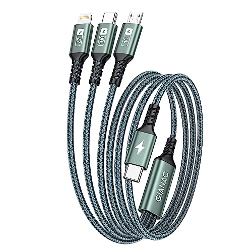 100W USB C to Multi Charger Cable [1.2M] Super Fast Charger Cable with E-Mark Chip, 3 in 1 USB Cable with Lightning Micro USB Type C Connector for iPhone,Samsung,Huawei,LG,Macbook Pro/Air,iPad Pro…