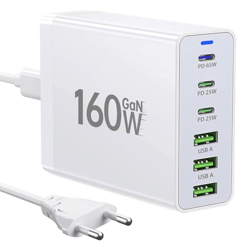 USB C-laddare,160W GaN 6-Port Multi-Port Charger,PD Fast Charger USB Desktop Charger Compatibel With i-phone12/13/14/15-serien, MacBook Pro/Air Galaxy S23/S22/S21