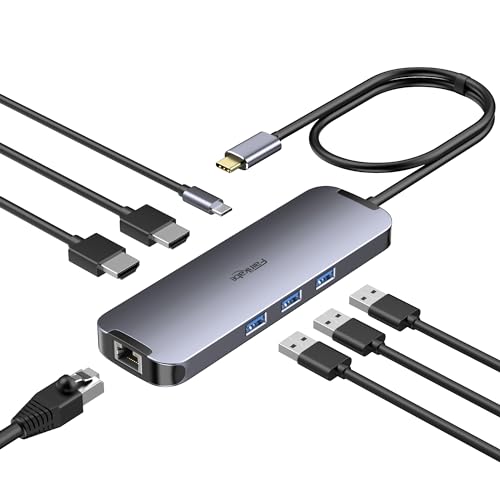 Hopday USB C-hub, 10 i 1 dockningsstation med dubbla bildskärmar, laptop adapter (Gigabit Ethernet, 4K HDMI, USB 3.0, PD 100 W, 3,5 mm MIC, SD/TF-läsare) för MacBook Pro/Air, HP, Lenovo, Dell