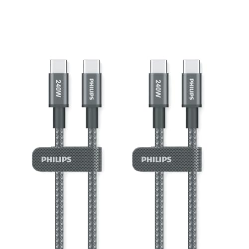 Philips DLC7060C USB-C-kabel 240W PD, 6,6 fot/2 m, snabbladdning, E-markörchip, nylonflätad, för MacBook, iPad, iPhone, Switch, Android, bärbar dator