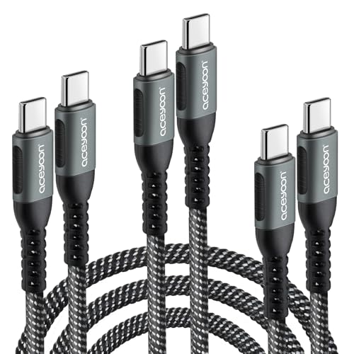 Aceyoon 100W USB C-kabel [3 stycken 0,5m 1m 2m] 5A PD Snabbladdningskabel Med E-markör Chip, QC3.0 för iPhone 15-serien, MacBook, Galaxy, Huawei