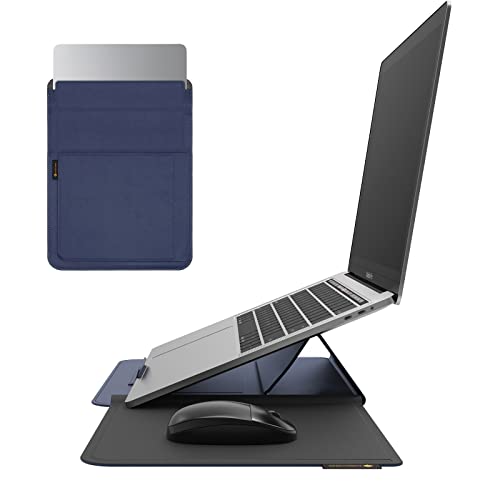 NOVOO RT13 4-i-1 Laptop-fodral, vattentätt läderfodral med magnetiskt lock, bärbar dator, kortplats, musmatta, Kompatibel med MacBook Air/Pro 13" - Blå