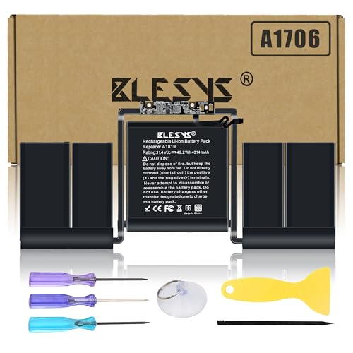 BLESYS A1819 Laptop Batteri för MacBook Pro 13 tum A1706 (sent 2016 mitten 2017) Touch Bar EMC 3071 3163 [11.4V 4314mAh]