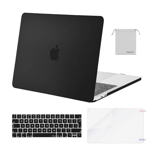 MOSISO Kompatibel med MacBook Pro 15 tum Touch Bar Fodral 2019 2018 2017 2016 Släpp A1990/A1707, Plast Hårt Skalfodral & Tangentbordskal & Skärmskydd & Förvaringspåse, Svart