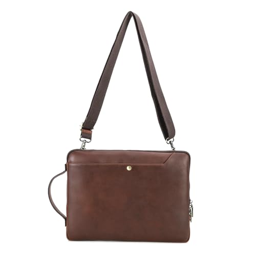 CONTACT'S FAMILY laptop axelväska för 14,2 tum MacBook Pro, äkta läder laptop messengerväska för 14,2 tum MacBook Pro med läderhandtag, Kaffe