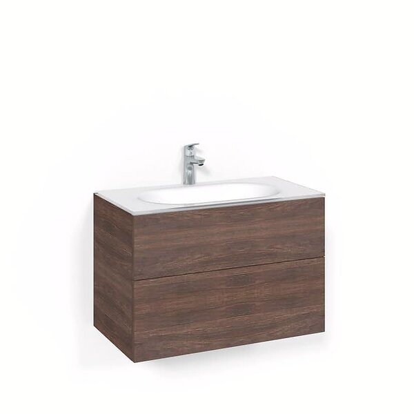 Macro Design Crown Line Servantskap 2-skuff med Glasservant Brun ask 80cm Glass Edge Svart