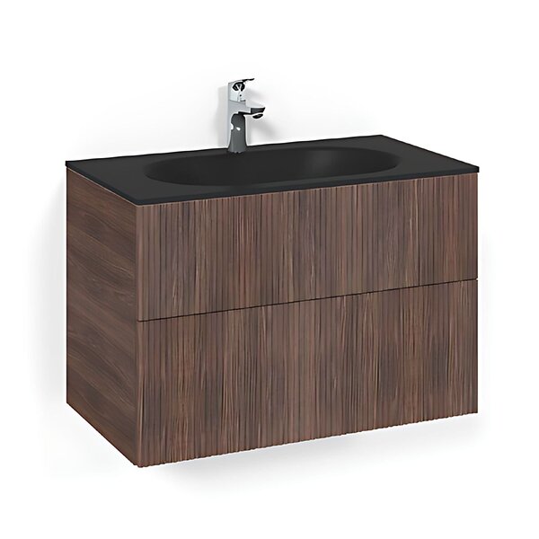 Macro Design Crown Line Servantskap 2-skuff med Glasservant Brun ask 80cm Glass Edge Svart