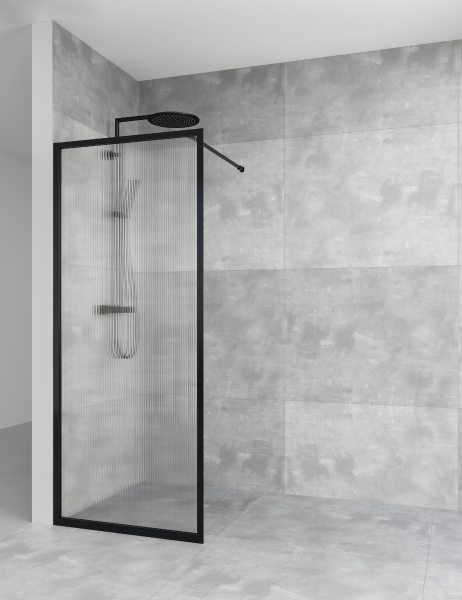 Empire Duschvägg Fast Svart med Räfflat Glas