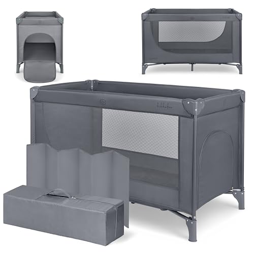 KIKKABoo Hopfällbar babysäng, kompakt, därmed resesäng, lätt, 120 x 60 cm, upp till 15 kg, utan madrass, inklusive bärväska (grå)