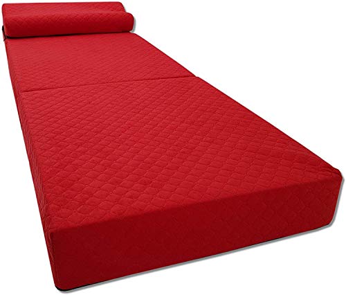Odolplusz Hopfällbar madrass, gästmadrass, 3-delad hopfällbar madrass, skum, intervertebral skivkub, vikbar, tvättbart överdrag, vikbar madrass, vuxna (70 x 200 x 15 cm, röd)