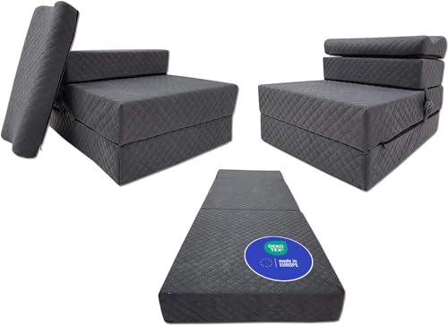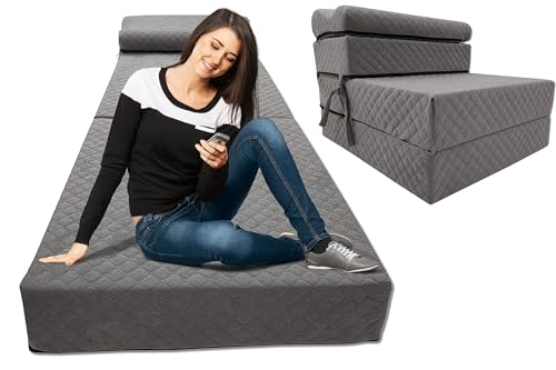 Odolplusz Hopfällbar madrass, gästmadrass, 3-delad hopfällbar madrass, skum, intervertebral skivkub, vikbar, tvättbart överdrag, vikbar madrass, vuxna (70 x 200 x 15 cm, grå)