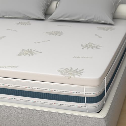 Topper, med aloe-tyg, höjd 3 cm, tillverkad av visko-minnesskum, matta, korrigering för madrass eller fransk madrass, 140 x 200 cm