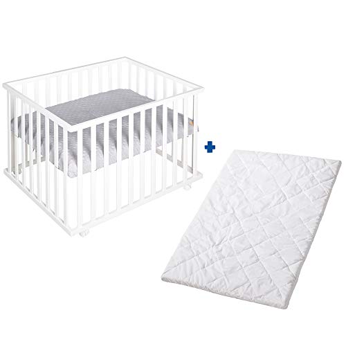 roba Set inkl. Spelhage 75 x 100 cm + Madrass - Fullständigt set spelspilta med Insats roba Style grå - 3-faldigt höjdjusterbar - Trä vit