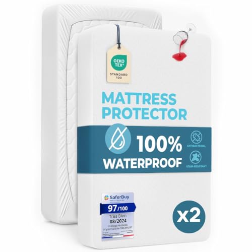 Dreamzie Vattentätt Madrassskydd - För Madrass 80 x 190 cm - Madrassdyna Andningsbar Bomullsmadrass - 15 Års Garanti - uppsättning av två
