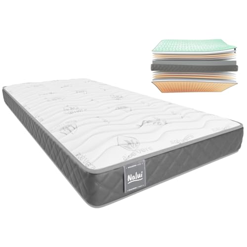 NALUI - Galana Indragen fjäderbädd Madrass 80x190 cm med Viscoelastisk Gel, Strech Cashmere Fabric och 3D Andas tyg. Höjd:±26cm | Mjuk fasthet | Tillverkad i Spanien