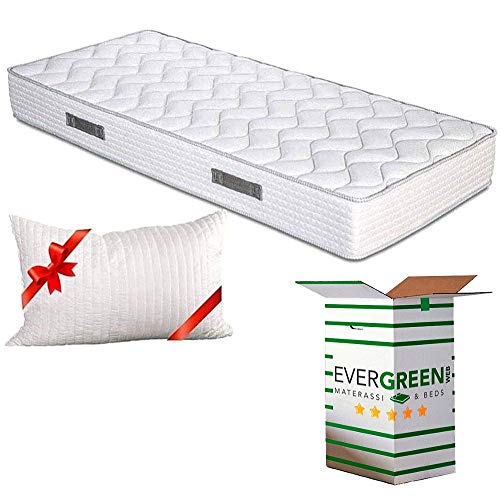 EVERGREENWEB – ortopedisk madrass med vattenskum 80 x 190 cm, höjd 20 cm + 1 visuell skumkudde gratis av minnesskumflingor, andas, allergivänliga, ergonomiska, 100 % tillverkad i Italien | mode