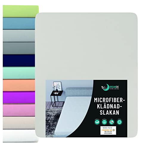 Dreamzie Lakan 80x190/200 Keps 35 cm för tjock madrass - 100% mikrofiber - Bruten Vit, certifierad kemikaliefri (Oeko TEX), Lakan med full resår
