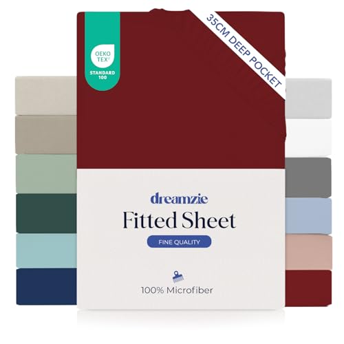 Dreamzie Lakan 80x190/200 Keps 35 cm för tjock madrass - 100% mikrofiber - Burgundy, Certifierad utan kemiska produkter (Oeko TEX), Lakan med full resår