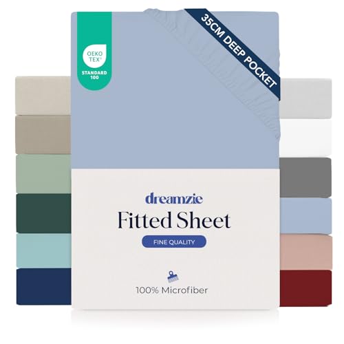 Dreamzie Lakan 80x190/200 Keps 35 cm för tjock madrass - 100% mikrofiber - Blå, Certifierad utan kemiska produkter (Oeko TEX), Lakan med full resår