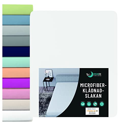 Dreamzie Dra på-lakan - För Madrass 80 x 190/200 cm - 100% Polyester - Auktoriserad OEKO-TEX® - Vit - Mjuk som en Persika