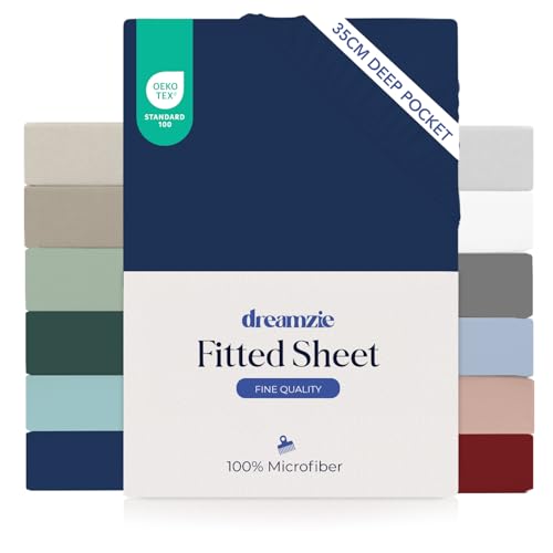 Dreamzie Lakan 80x190/200 Keps 35 cm för tjock madrass - 100% mikrofiber - Mörkblå, certifierad kemikaliefri (Oeko TEX), Lakan med full resår