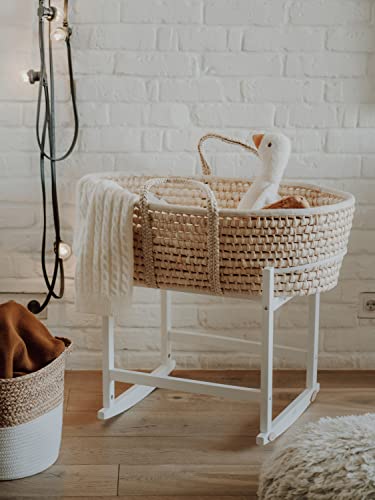 Generic Baby Mosekorg med gungstativ och madrass i tre lager, trästativ, sängkläder, handgjord babysäng, babyrum, semi-single, 23