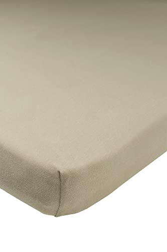 Meyco Baby Uni underlakan för madrass till lekhage (underlakan med mjuk jerseykvalitet, tillverkad av 100% bomull, perfekt passform tack vare elastisk dragsko runt om, andas, mått: 75 x 95 cm), taupe