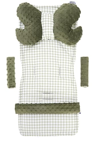 Medi Partners Barnvagn barnkudde reducerare, sittdynor barnstol madrass - universell Minky bomull Cushion sits för bebis, 78 x 35 cm (galler med olivminky)