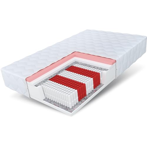 FDM FAMILY Fjädermadrass i fickfjädern 80 x 200 cm madrass 7-zoner kokos 18 cm höjd hårdhetsgrad H4/H3 (hård/medelhård) överdrag dubbelsidigt avtagbart tvättbart