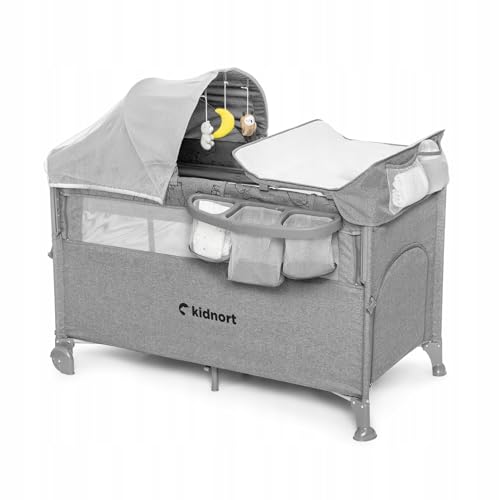 Kidnort Stugan vikbar resesäng, lekhage, skötbord, madrass (ljusgrå)