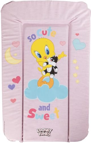 Warner Bros Looney Tunes skötbord, madrass, mjukt skötbord för pojkar och flickor med Titti- och Silvestro-grafik, mäter 73x48,5x3 cm