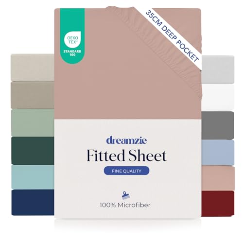 Dreamzie Lakan 140x190/200 Keps 35 cm för tjock madrass - 100% mikrofiber - Ljusrosa, certifierad kemikaliefri (Oeko TEX), Lakan med full resår