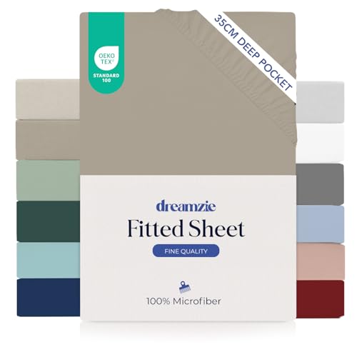 Dreamzie Lakan 180 x 200 Keps 35 cm för tjock madrass - 100% mikrofiber - Beige, Certifierad utan kemiska produkter (Oeko TEX), Lakan med full resår